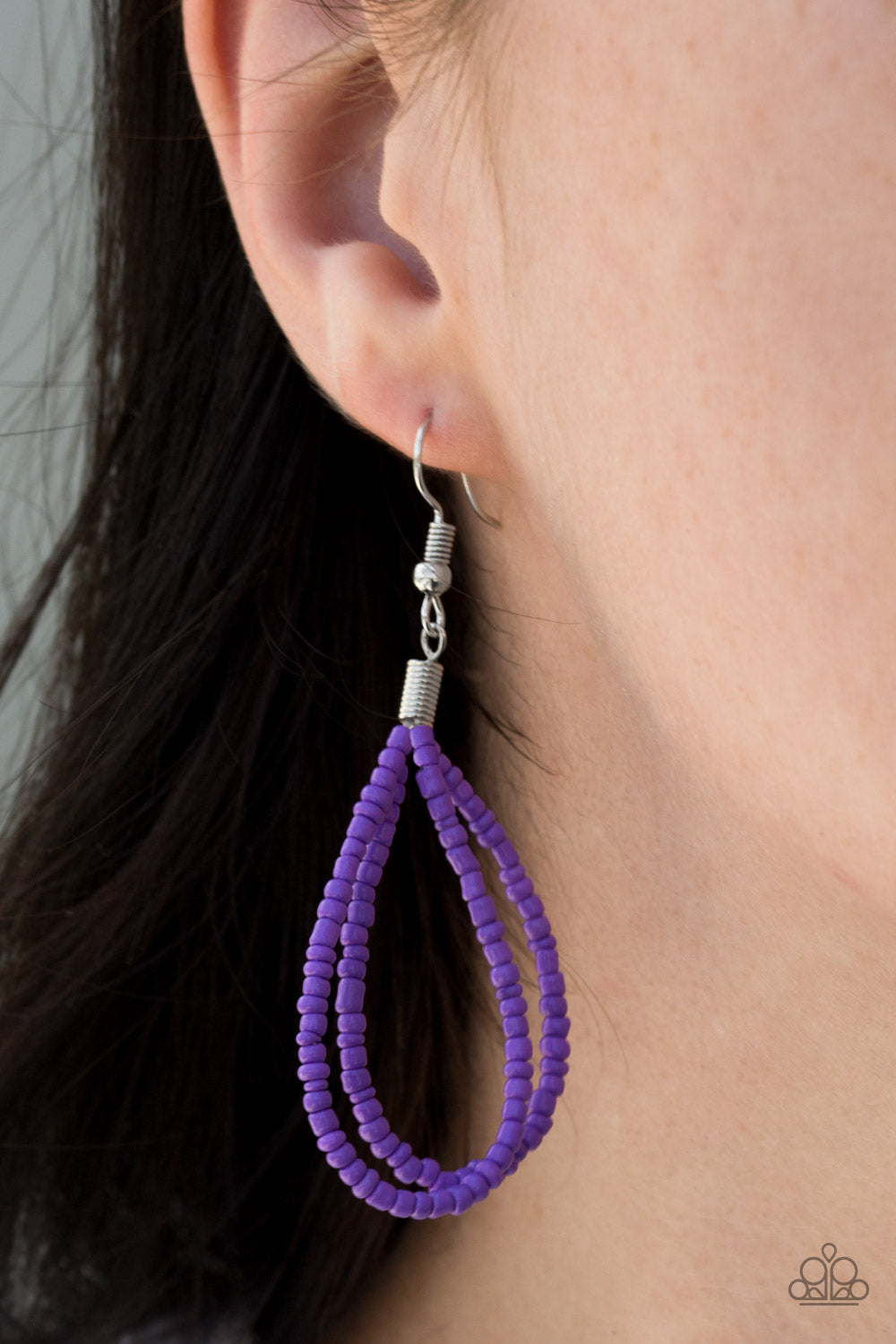 Row after row of vivacious purple seed beads cascade down the chest, creating summery layers. Features an adjustable clasp closure.