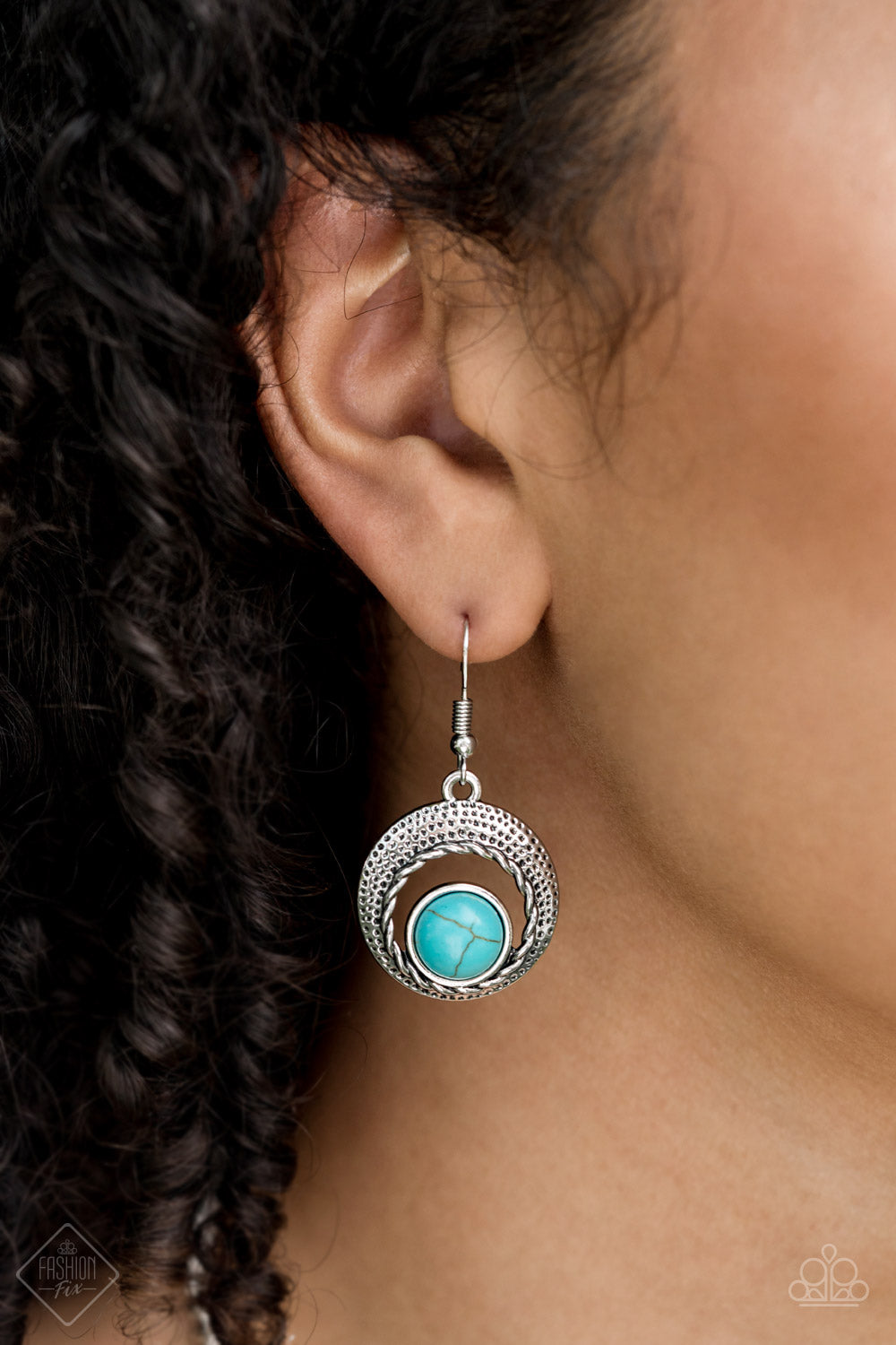 Refreshing turquoise stones are bordered by simple silver frames and nestled inside larger beveled frames decorated in hammered texture. The inner edge of the larger frame features a twisted rope-like appearance, adding a rustic finish to this artisan inspired design. Features an adjustable clasp closure.